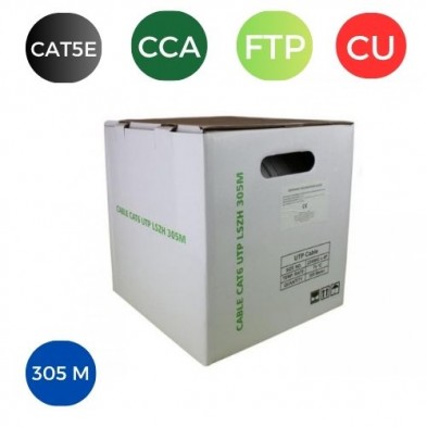 Cable CAT5E. FTP LSZH CU Cca RIGIDO Bobina 305 mts. Color VERDE LIMA